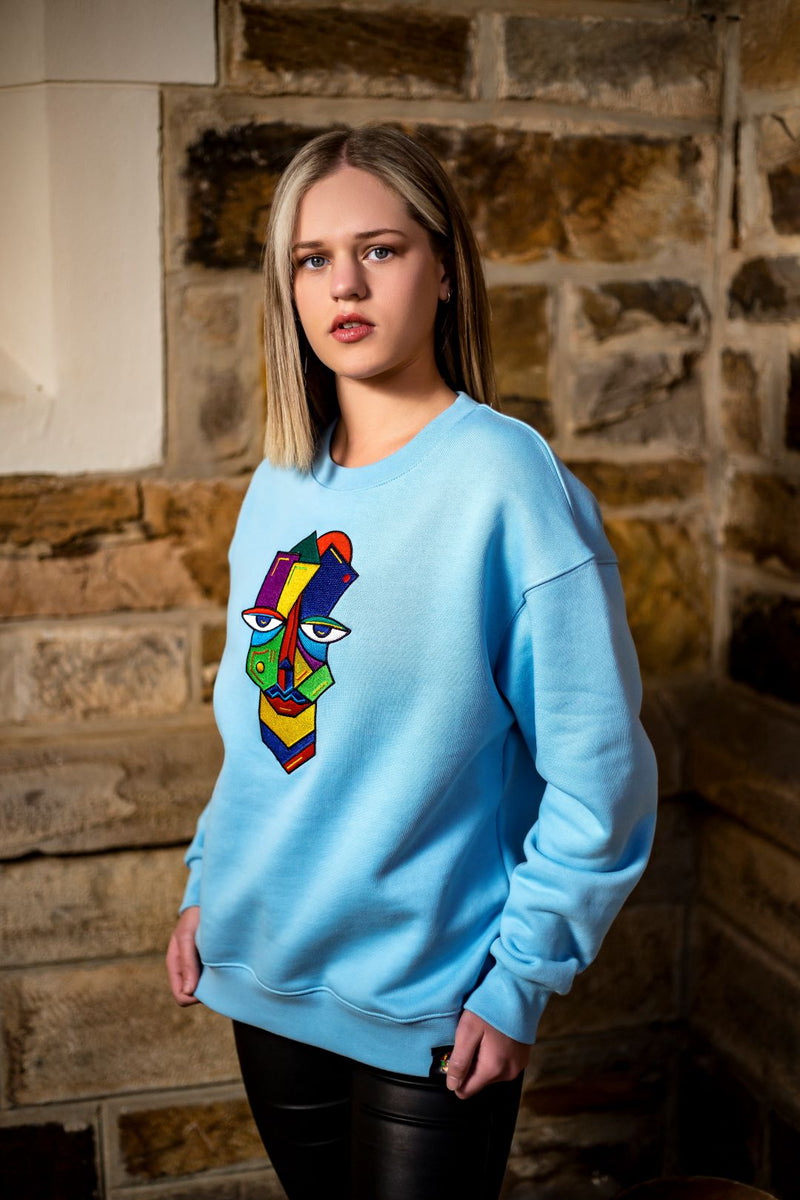 Sitwala Embroidery Heavy-Weight Crewneck (Unisex Sky Blue Color)